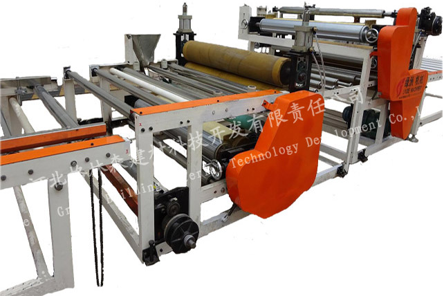 本机型是采用石膏板双面涂胶覆膜技术【专利号:ZL 2017 2 0732780.8】,同步涂胶将正面(PVC膜)和反面(PET镀铝膜)一同贴合,无需翻面。缩短了生产线设备长度。设备投资少,见效快。01、02型适用于中小型加工企业,03型适用于大、中型加工企业。