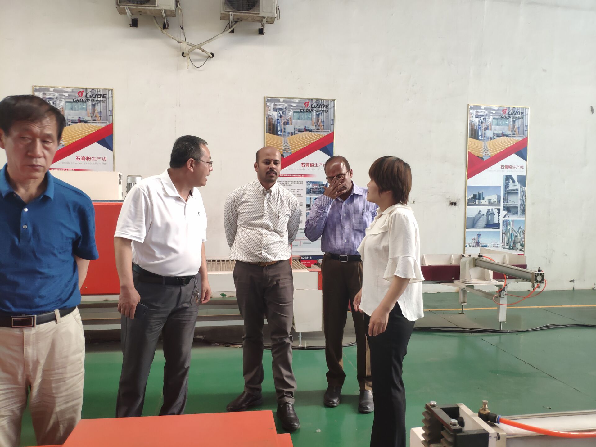欢迎印度客户来我公司了解石膏板覆膜机及玻镁板设备!