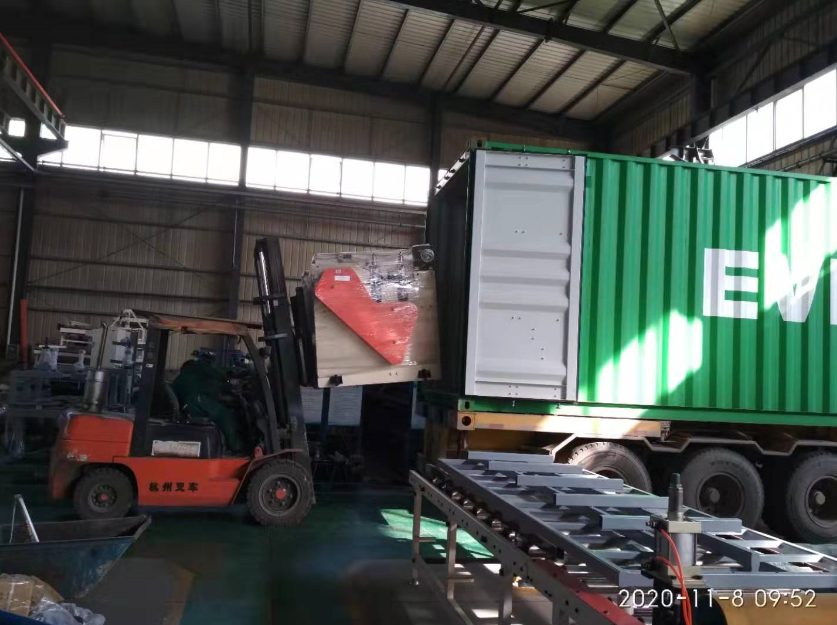 2020年11月9日发往沙特的石膏板覆膜机设备装车发