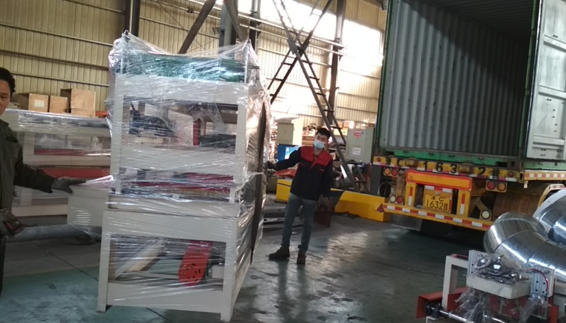 2020年11月9日发往沙特的石膏板覆膜机设备装车发